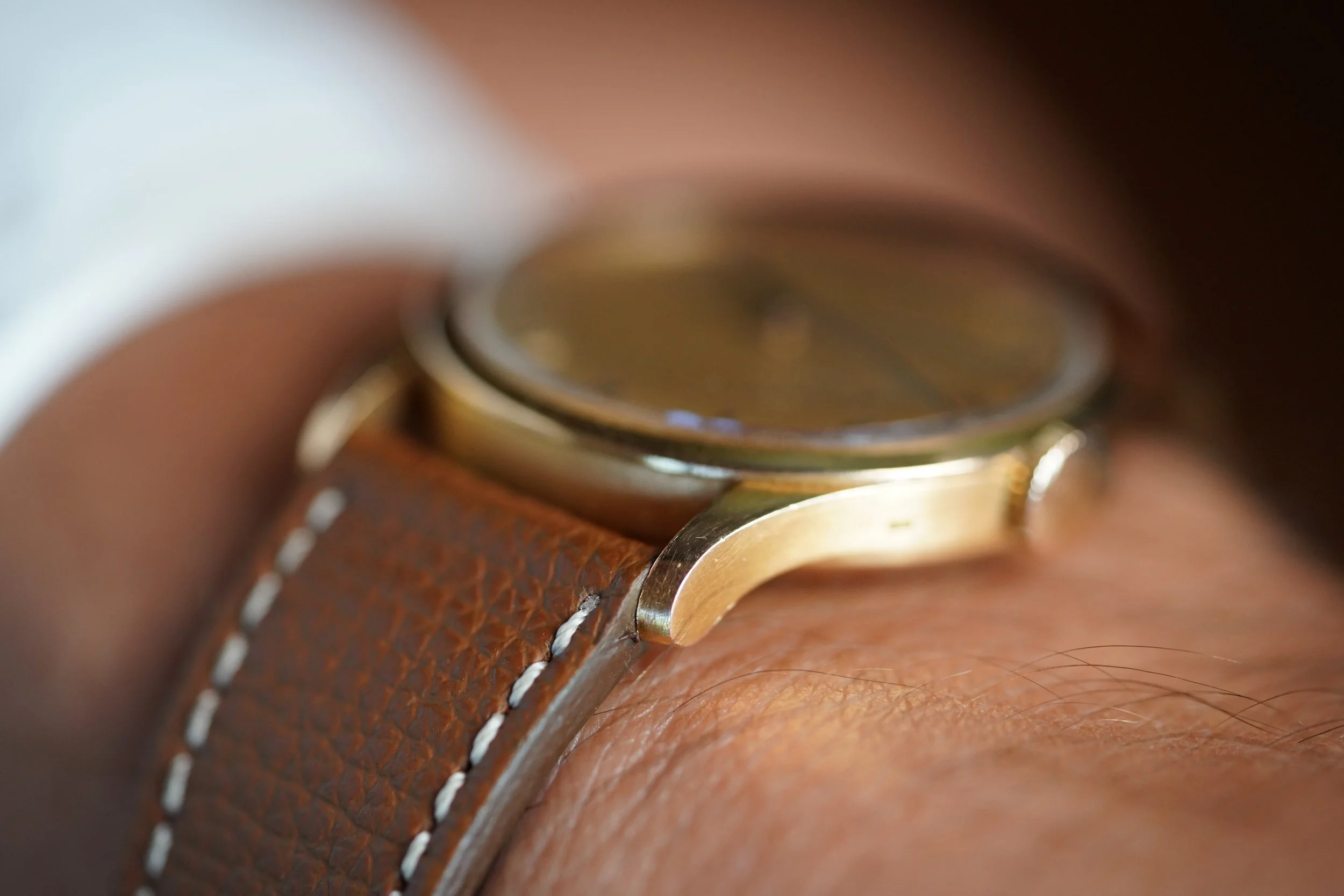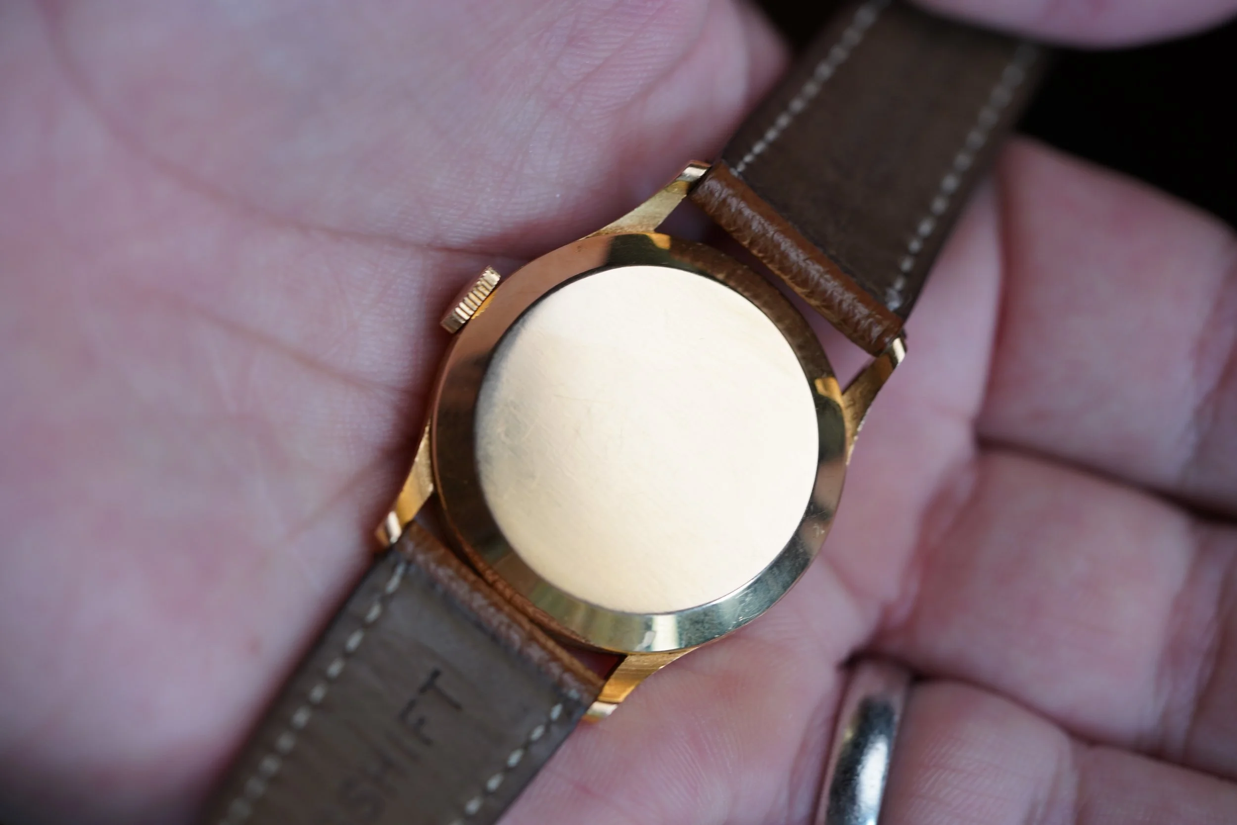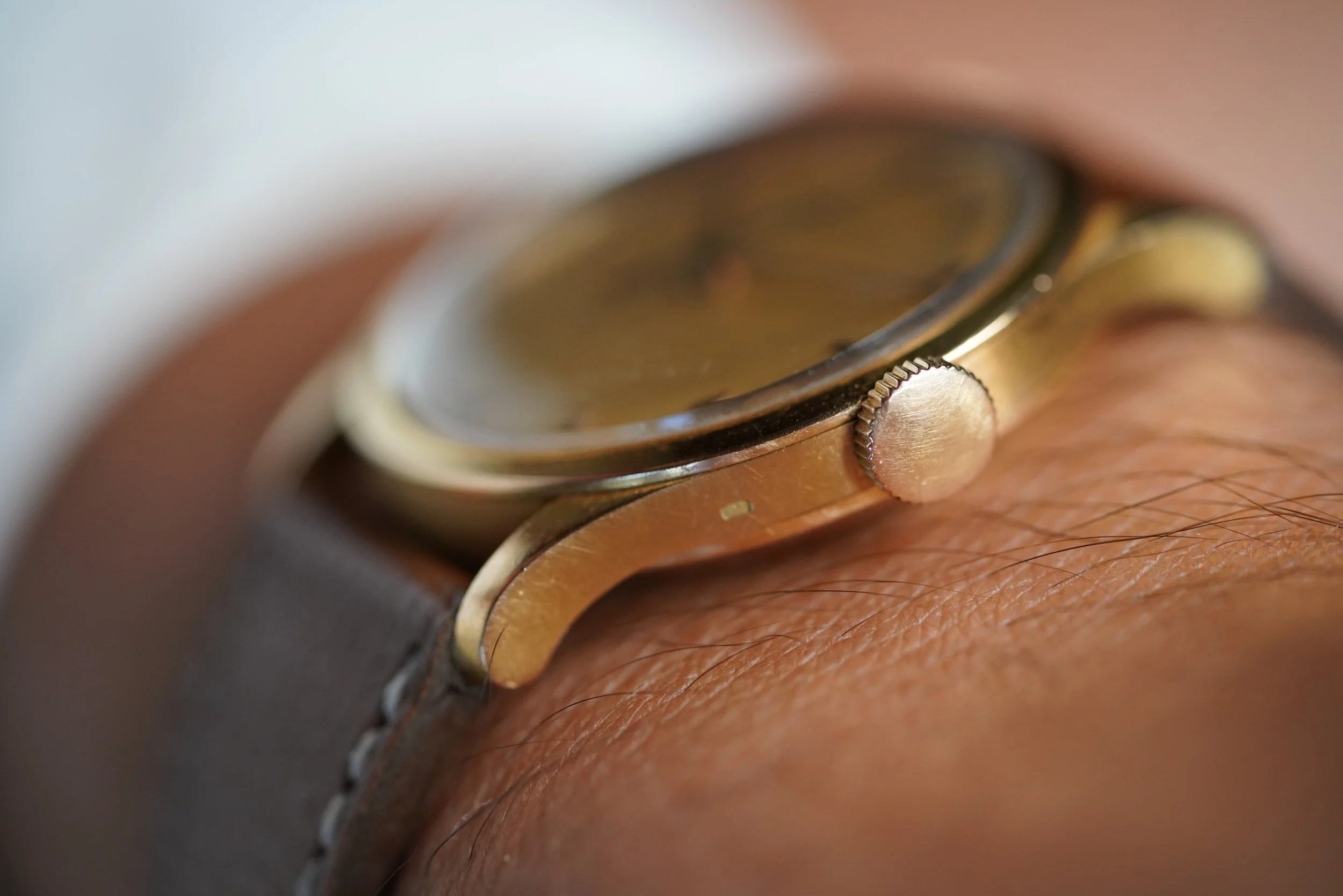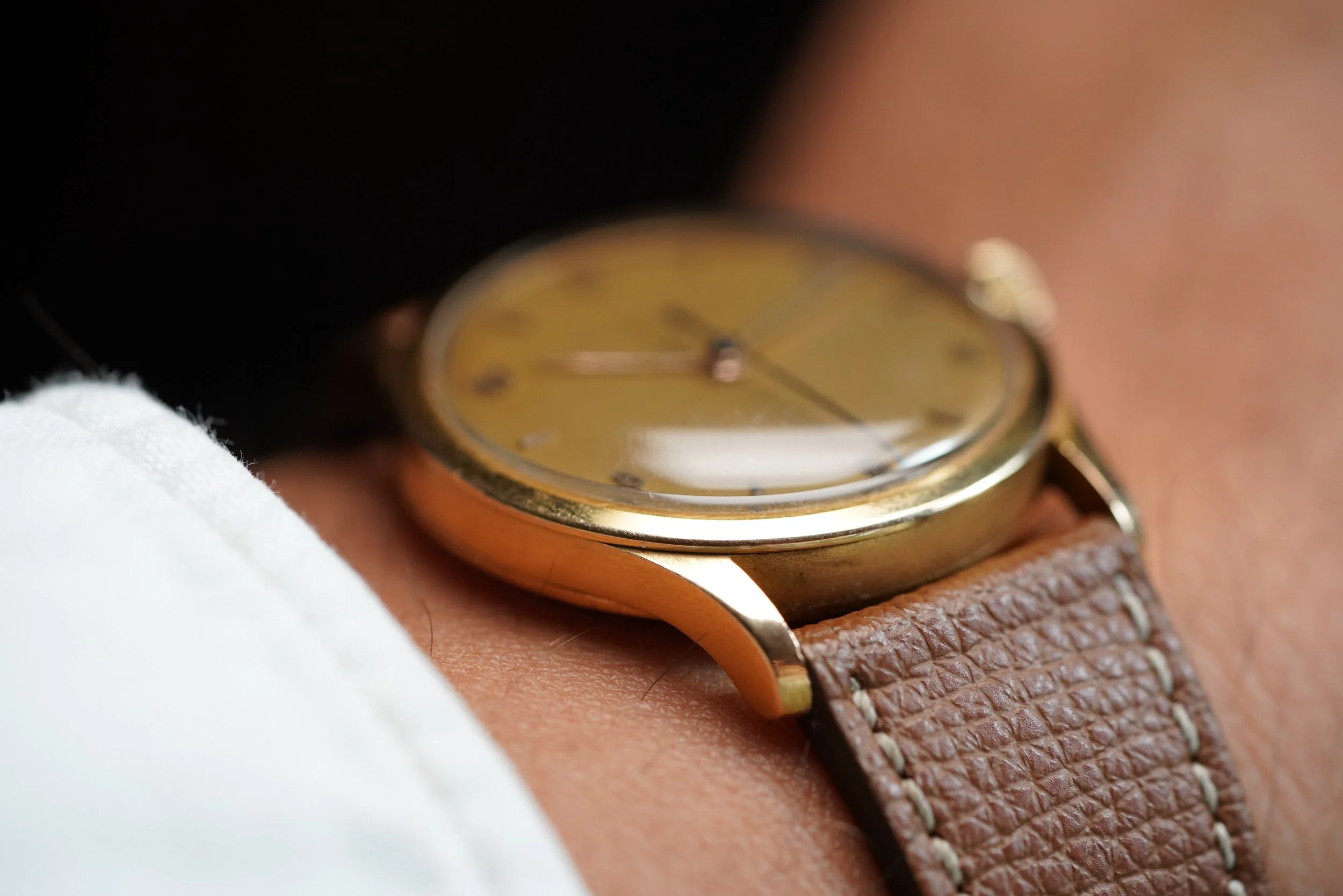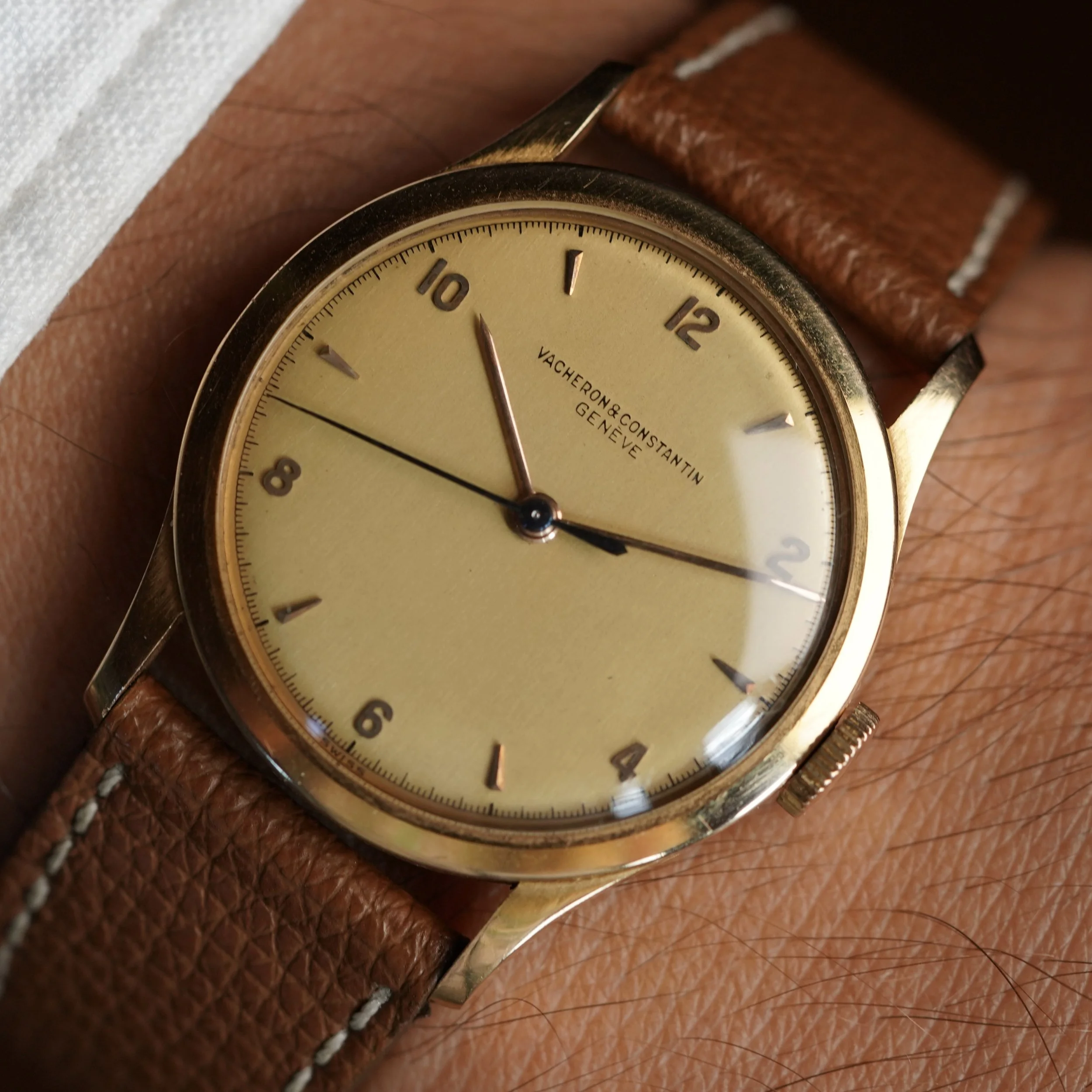 This Vacheron & Constantin is a very attractive time-only dress watch. The reference is a 4217 and appears to be 18K rose gold. The case appears to be unpolished. The case measures approximately 34mm in diameter. It features a non-luminous dial with even applied-Arabic numerals. The watch dates to the 1950s.