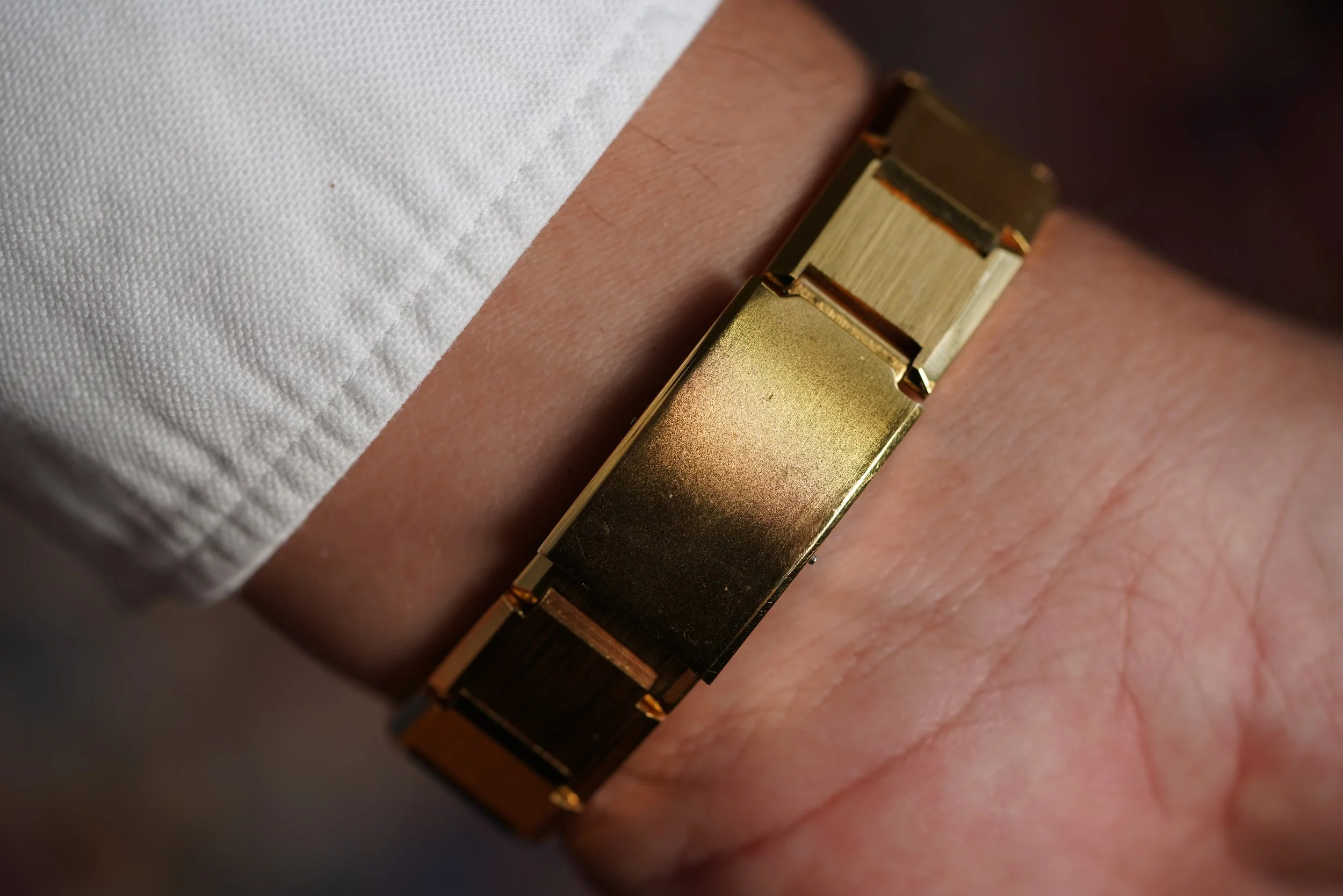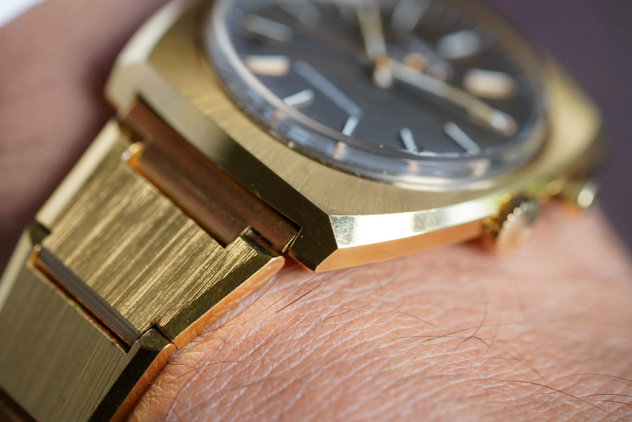 This is a super cool Vulcain Cricket paired on the incredibly rare original bracelet. The massive case measures 41mm lug-to-lug, with a diameter of 38mm (excluding the crown). These models will exclusively feature the calibre MSR S2, a manual wind alarm calibre that operates in the same manner as the calibre 120. If you purchase this watch, you will be watch twins with Eric (the most prolific Cricket collector) who has an example in steel!