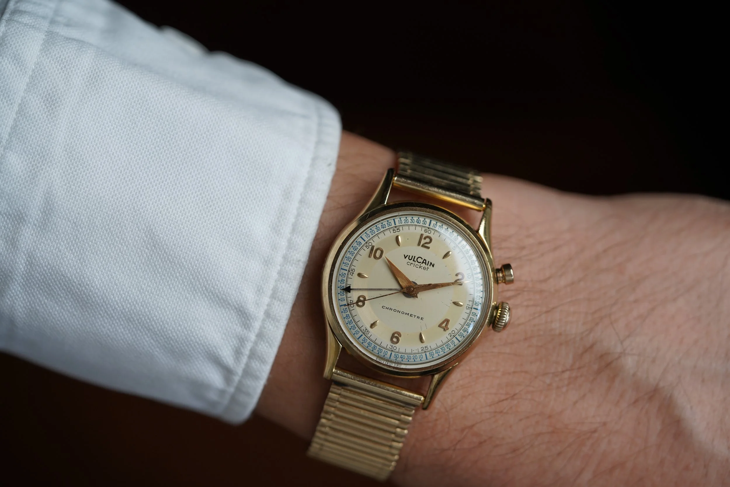 Vulcain Cricket Sector Dial Chronometre 2nd Series Reference in 14K YG on C+B Bracelet Unpolished