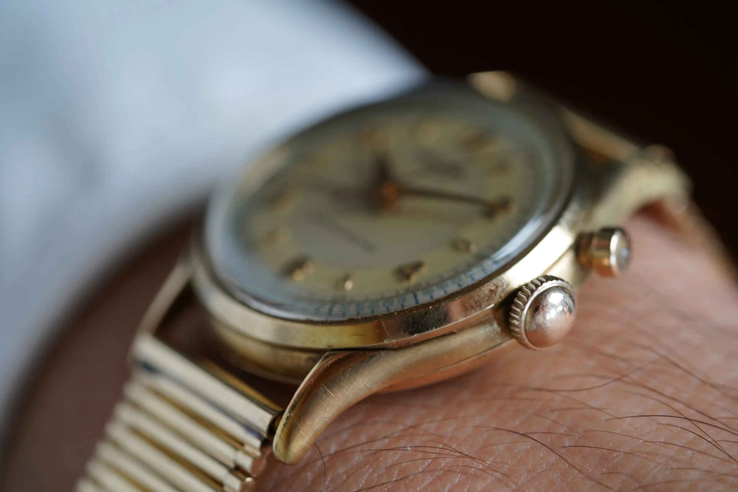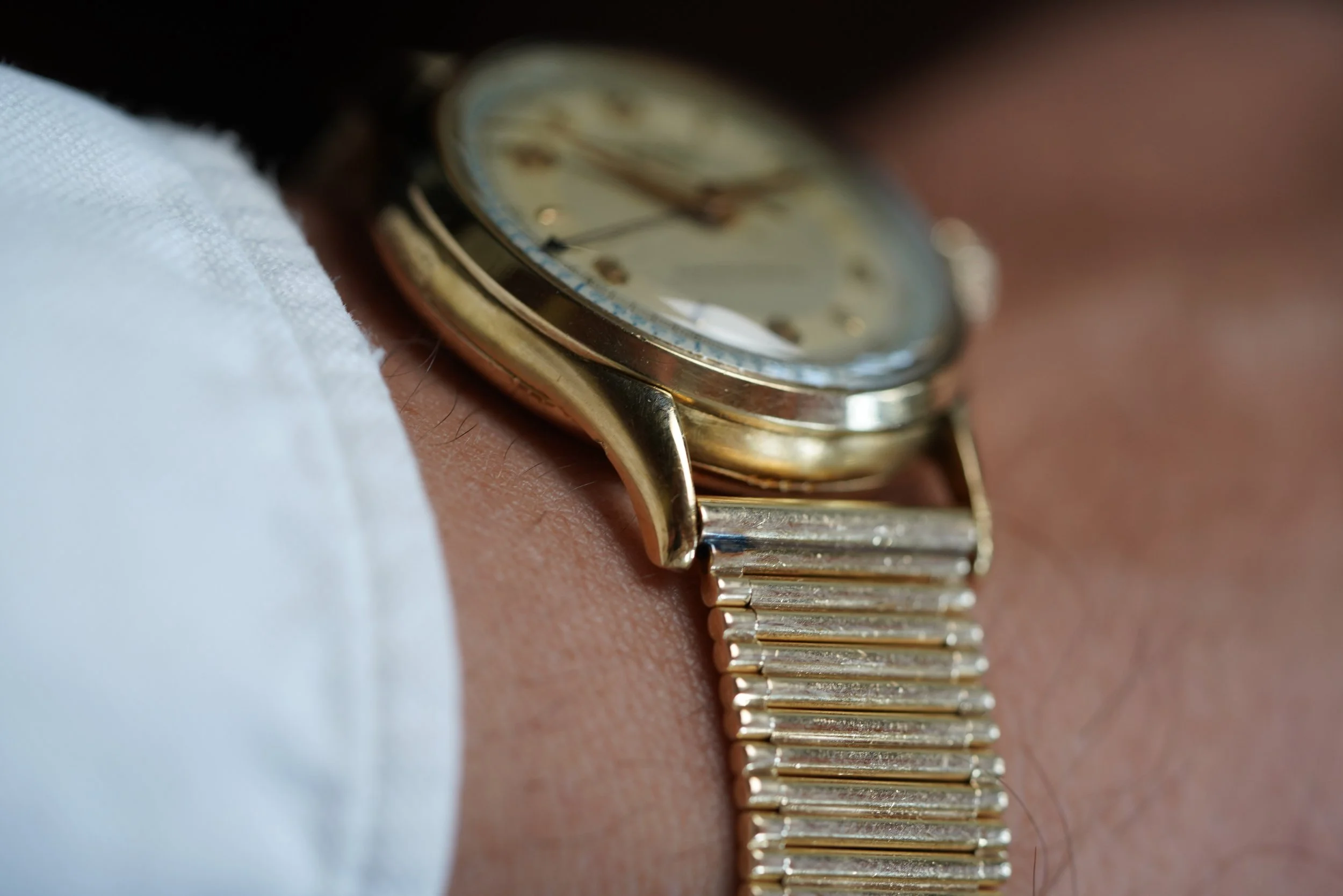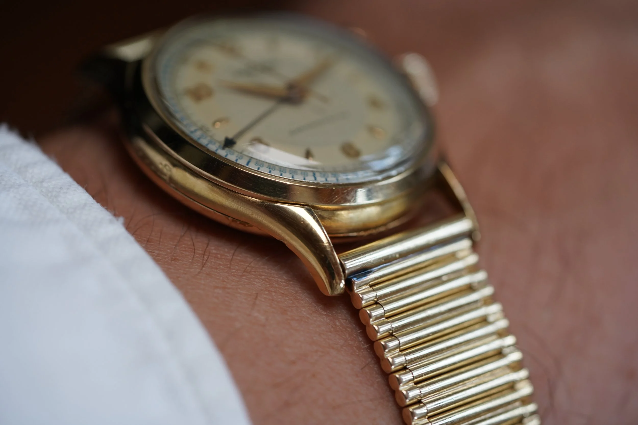 It is paired on an 14K yellow gold C+B bracelet from the 1960s which were sold on timepieces at Cartier and Tiffany & Co. New York. The bracelet is absolutely incredible and would be a great compliment for any watch in yellow gold. The bracelet is approximately $15,000.
