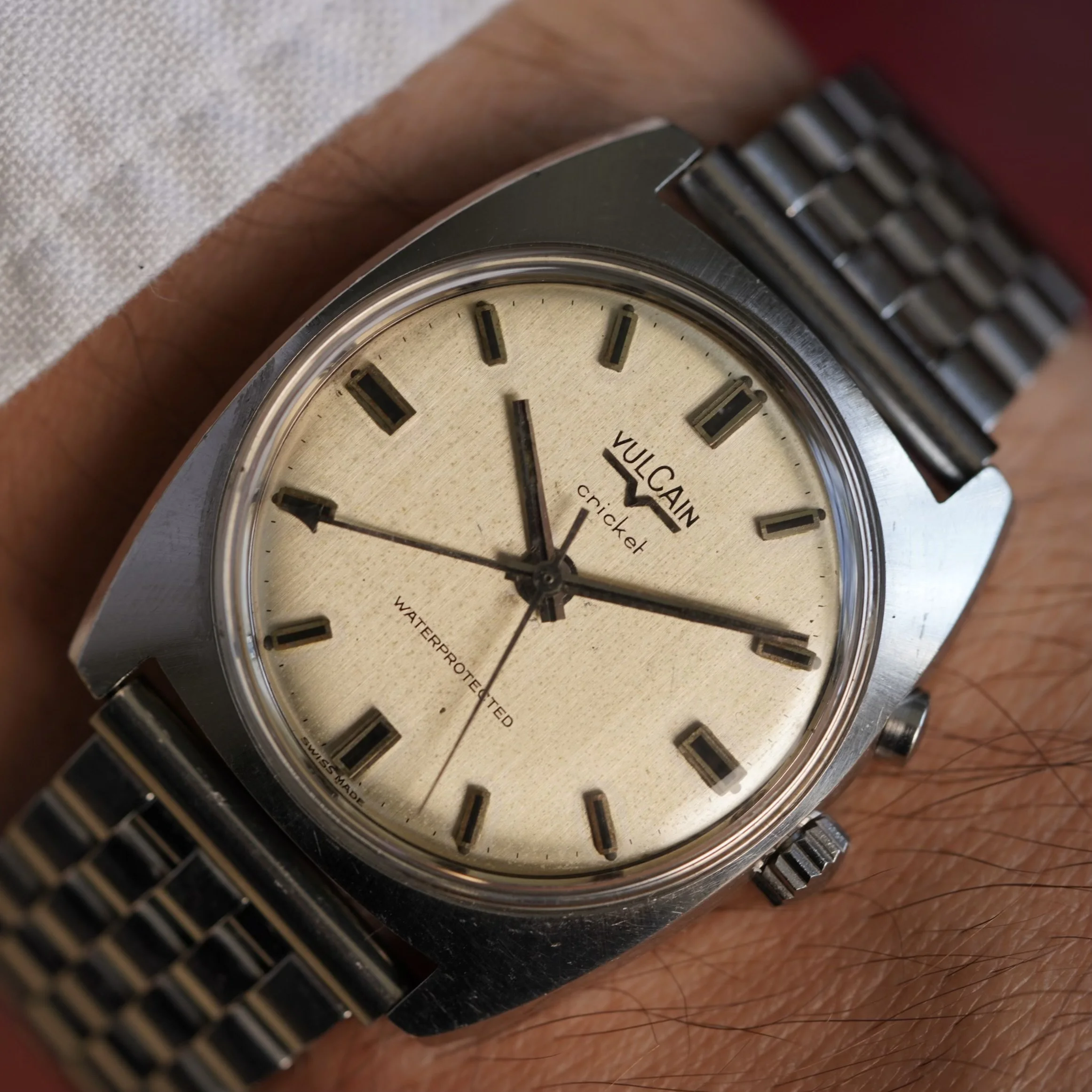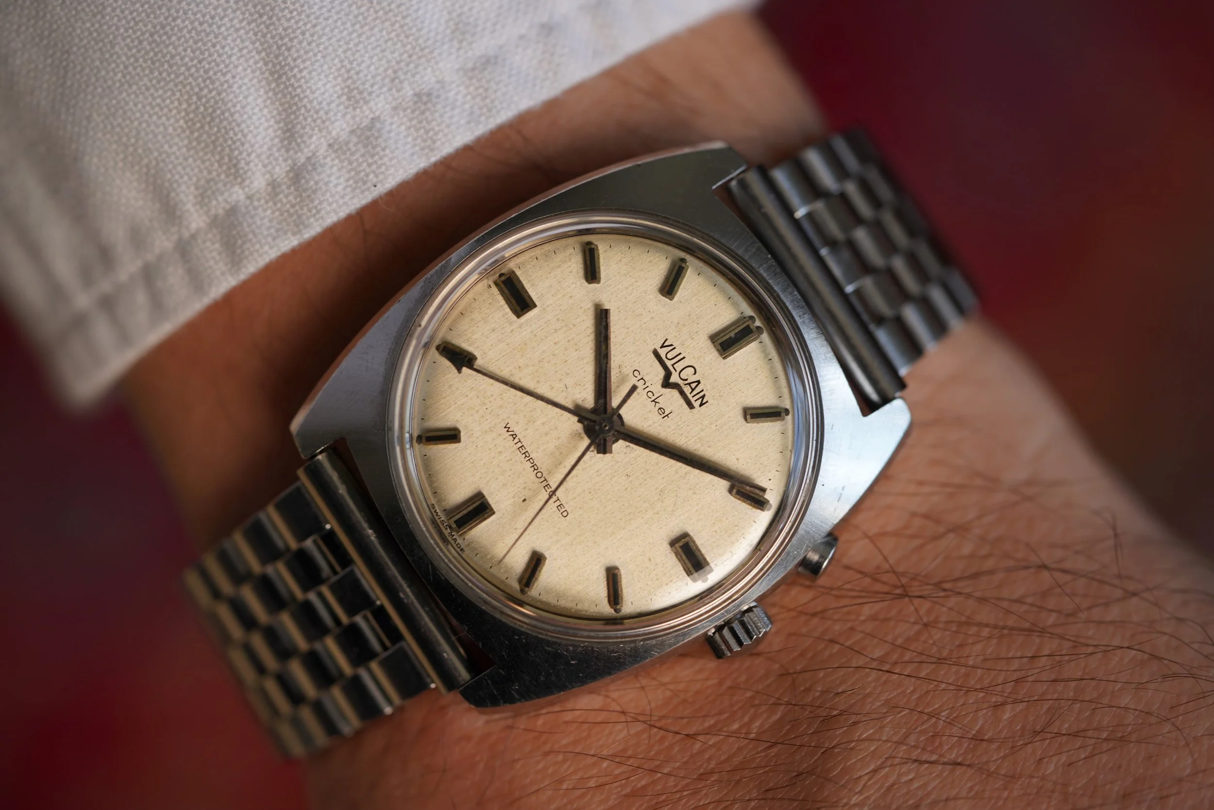 This Vulcain Cricket reference S2325B is one of the many great models from the 1960s and 1970s. The cases on these models are among my favorites of all Vulcain Crickets. This example is lightly polished and the diameter is 34.5mm and 39mm lug-to-lug.