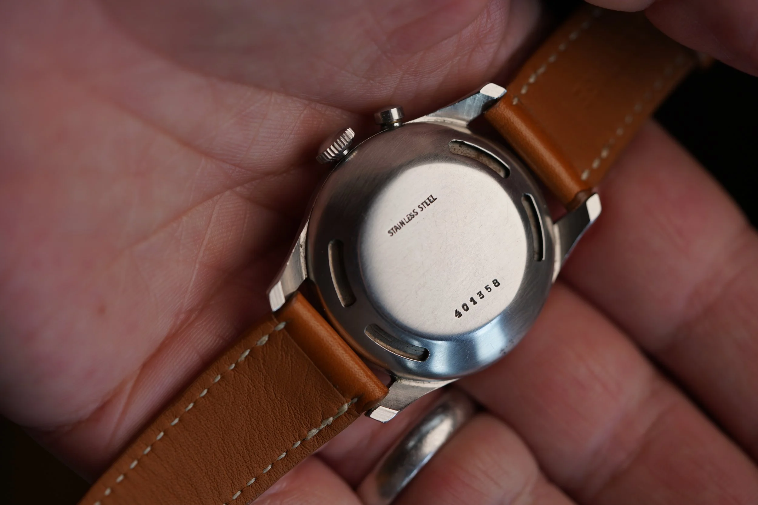 The early crickets had serial numbers on the case backs before they switched to reference numbers on the case backs. The case remains unpolished. The watch is powered by the calibre 120, and has an exceptional and loud alarm.