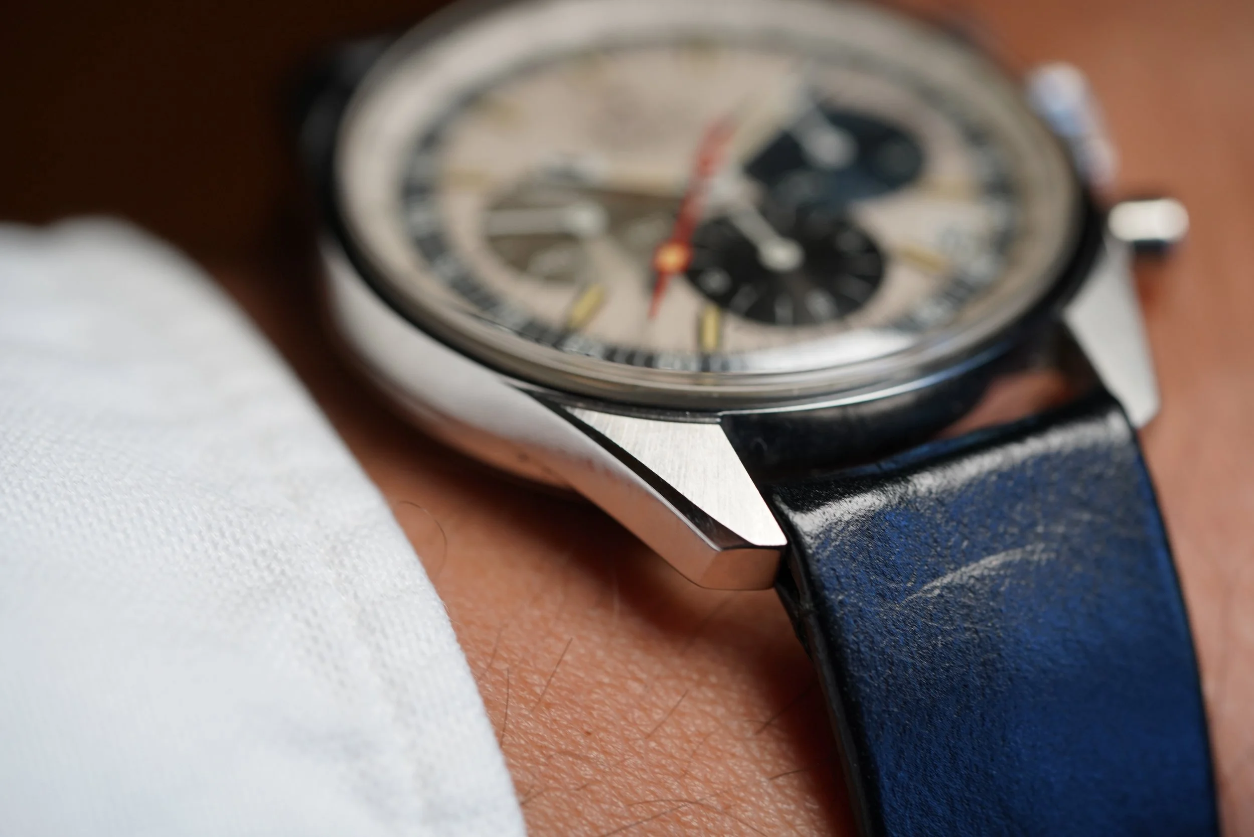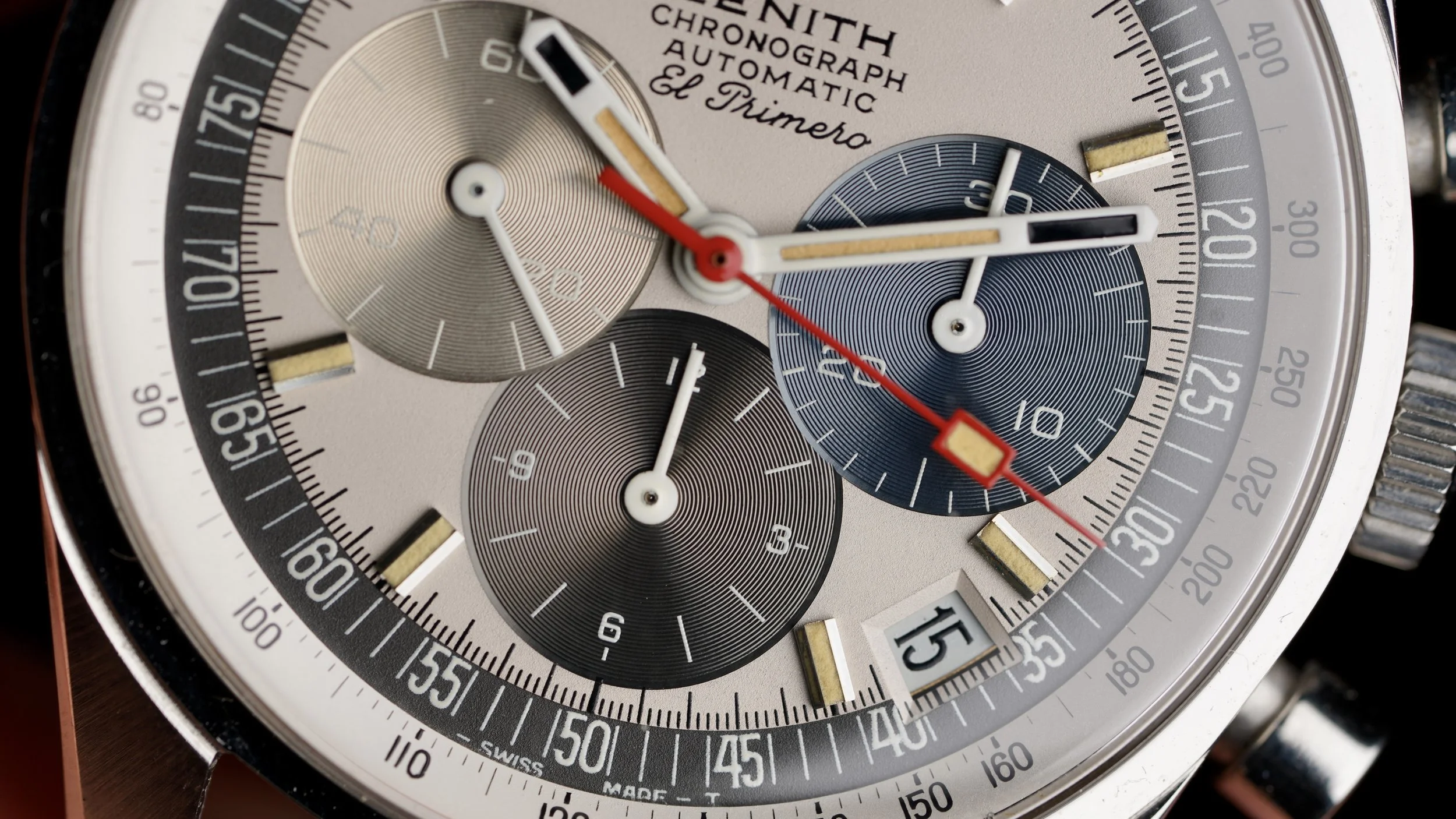 Introduced in 1969, the Zenith El Primero Reference A386 sits amongst the most celebrated chronographs in watchmaking. Powered by the automatic high-beat calibre 3019, the highly emphasized red chronograph hand glides over the dial. The tri-colored subdials are a beautiful element to these watches.