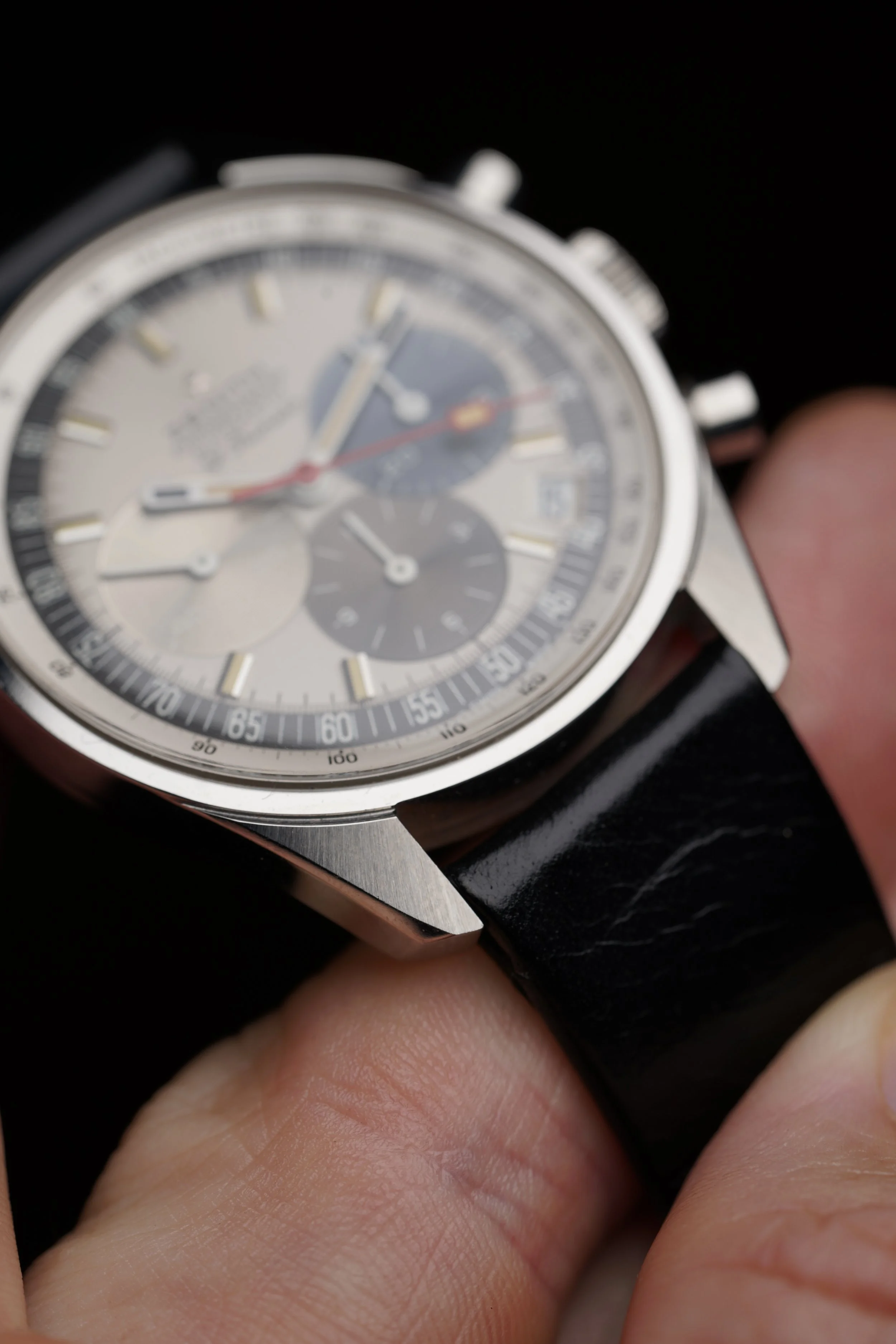It is paired on a Zenith strap and buckle. It is in outstanding condition! For those looking for one of the nicest Zenith El Primero A386, this is out of this world.